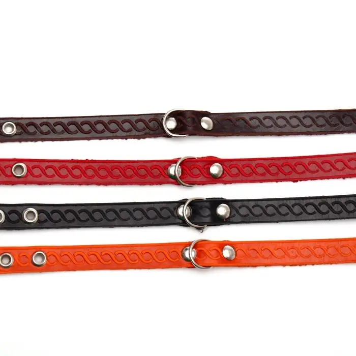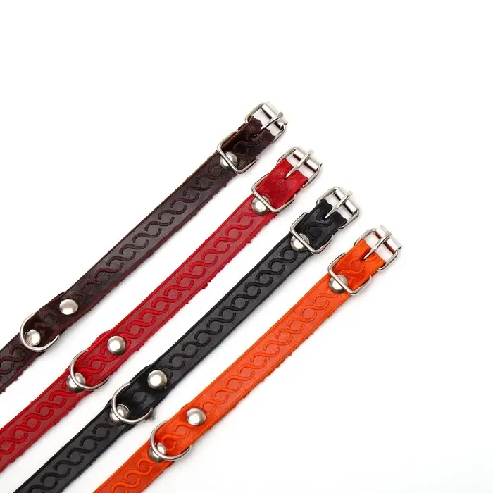Ошейник кожаный тисненый однослойный, 29×1.2 см, безразмерный, микс цветов
