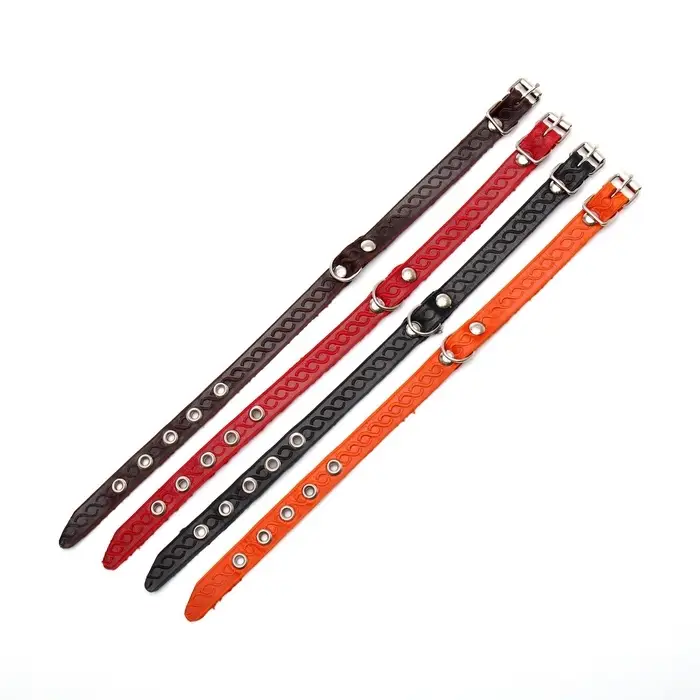Ошейник кожаный однослойный с рифлеными люверсами, 35×1.2 см, ОШ 10-28 см, безразмерный, микс цветов