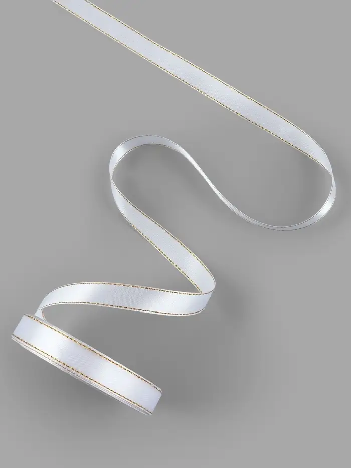 Белая атласная лента с золотым люрексом станет изысканным элементом любого рукоделия или праздничного декора. Материалом этой 15 мм широкой ленточки служит высококачественный полиэстер, который придаёт ей шелковистую текстуру и устойчивость к внешним воздействиям. Украсить всё от подарочной упаковки до домашнего интерьера можно, легко варьируя длину верёвки — она составляет 23 метра.