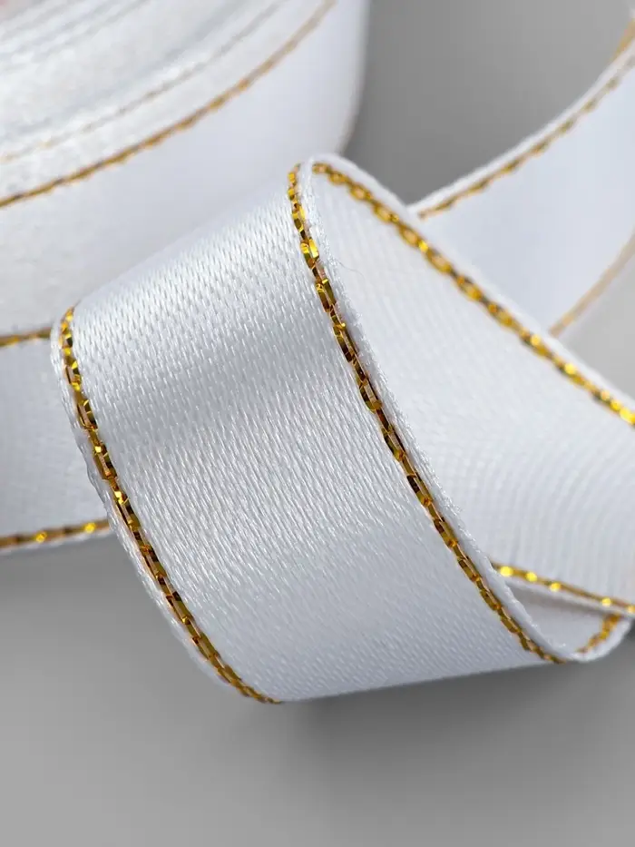 Лента атласная, с золотым люрексом, 25 мм, 23±1 м, белая №001