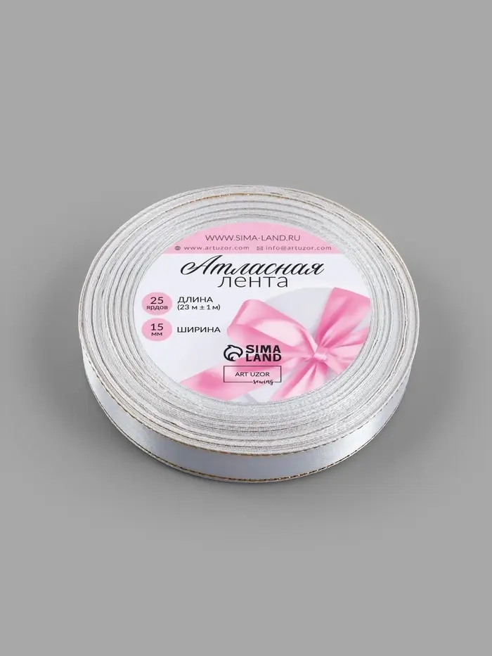 Лента атласная, с золотым люрексом, 15 мм, 23±1 м, белая №001