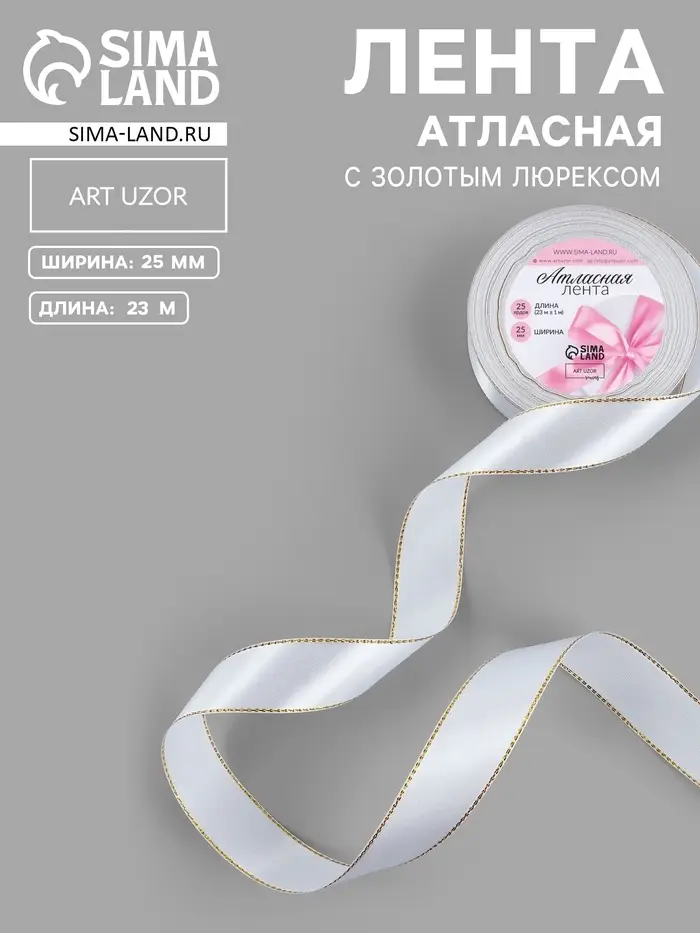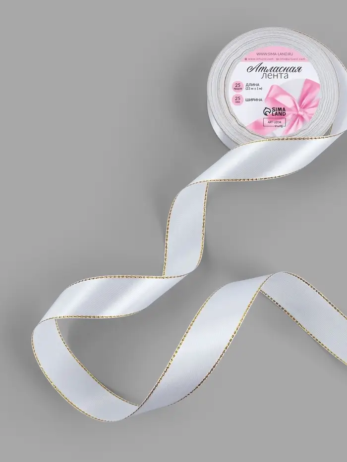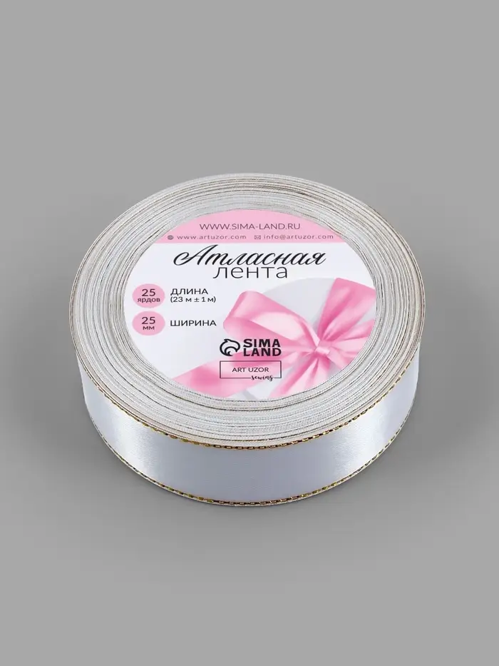 Лента атласная, с золотым люрексом, 25 мм, 23±1 м, белая №001