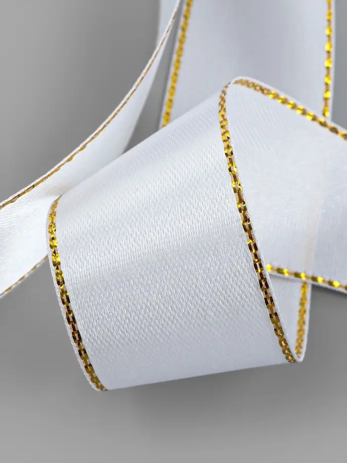 Откройте для себя разнообразие применения этой стильной ленты, которая вдохновляет на создание необычных и незабываемых декораций, подходящих для любого события. Белая атласная лента с золотым люрексом — ваш секретный ингредиент для креативного оформления и изысканных изделий!