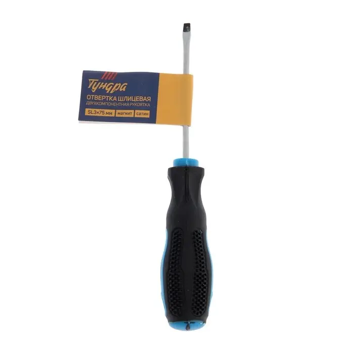 Отвертка шлицевая ТУНДРА, сатин, магнит, двухкомпонентная рукоятка, SL3×75 мм