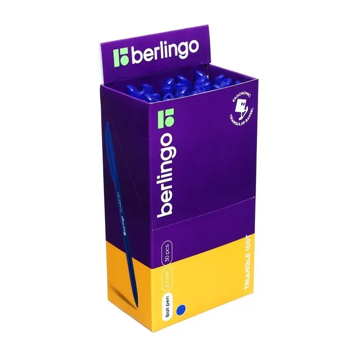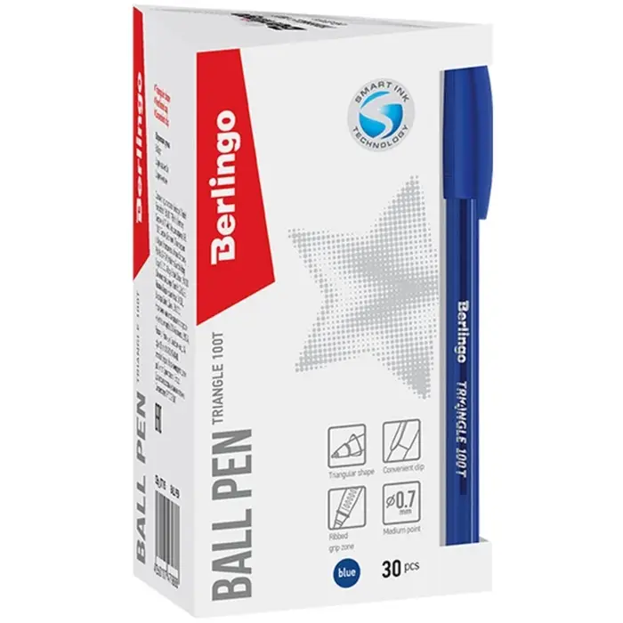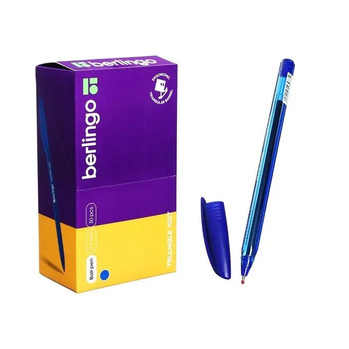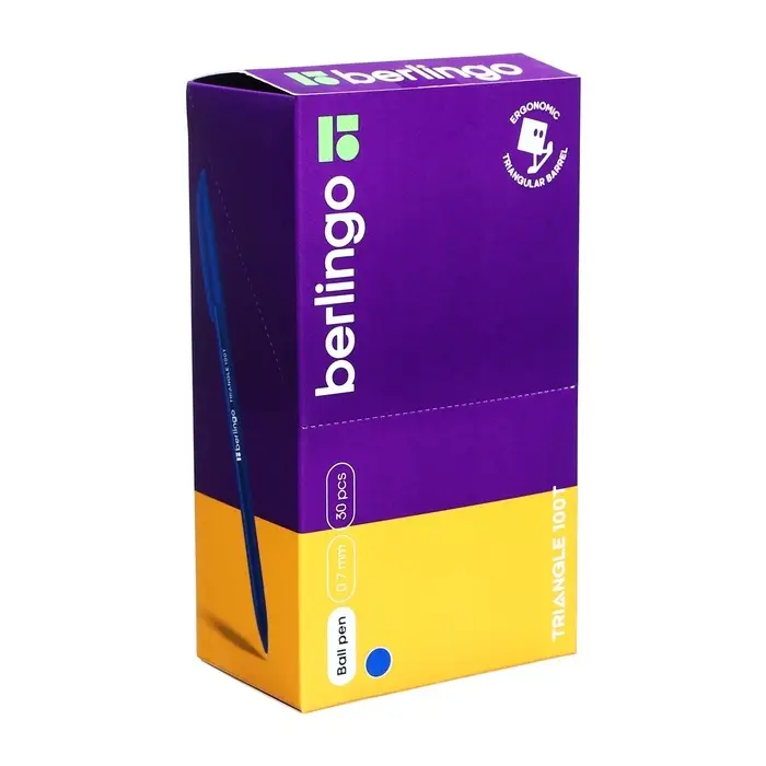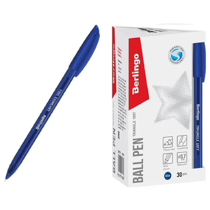 Ручка шариковая Berlingo. Triangle 100T, синий стержень, игольчатый узел 0.7 мм, треугольный корпус