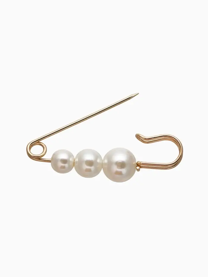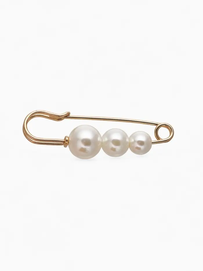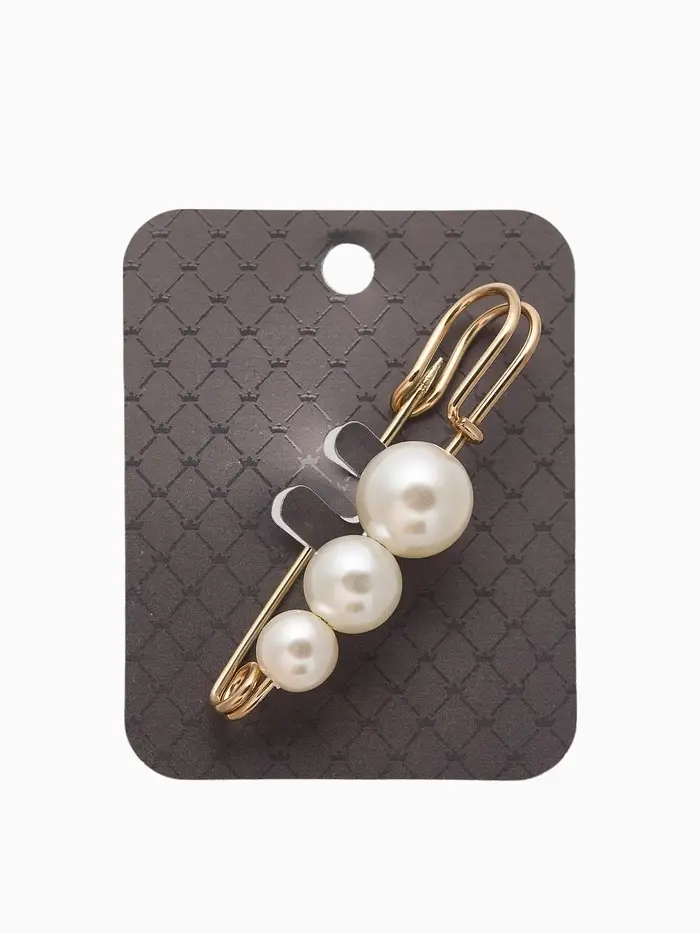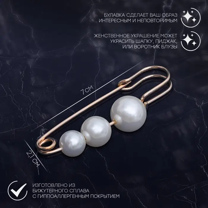 Изящная булавка длиной 7,5 см с тремя нежными белыми жемчужинами на золотистой металлической основе станет утончённым акцентом в любом образе. Лаконичный дизайн и гармоничное сочетание материалов создают ощущение лёгкости и изящества, подчёркивая женственность и стиль.
