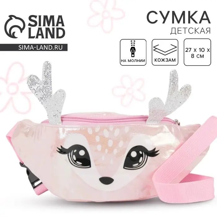 Сумка детская для девочки поясная «Оленёнок», на молнии, розовая