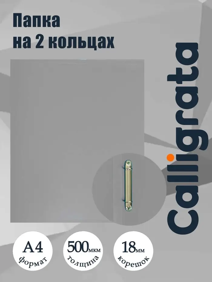 Папка на 2 кольцах А4, Calligrata, 18 мм, 500 мкм, серая