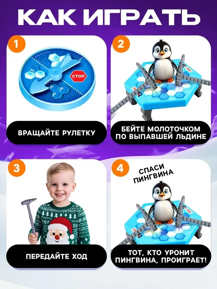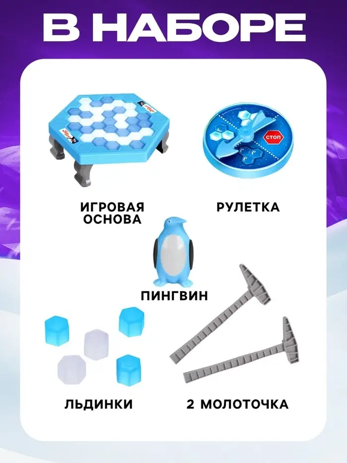 «Чья льдина крепче» — настольная игра для детей от 4 лет. Сюжет перенесёт ребёнка в увлекательную экспедицию по Антарктиде. Обитатели холодного континента — милые и дружелюбные зверята, которым не терпится познакомиться с малышом. Маленькому исследователю предстоит аккуратно взять пробу льда, не побеспокоив греющегося пингвина.