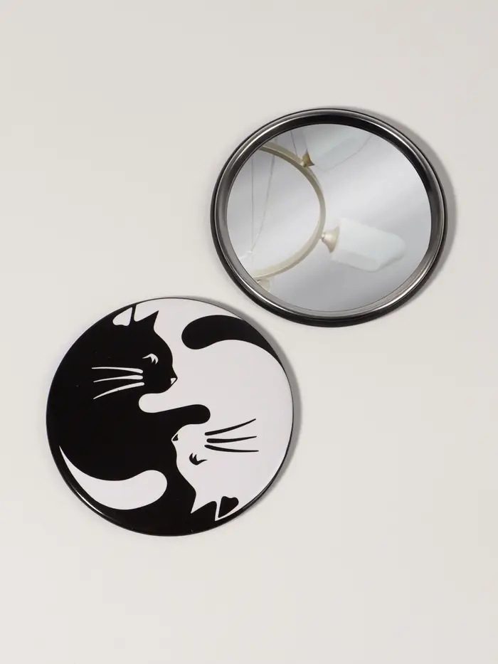 Зеркало карманное «Кошки», d=7 см, белое, чёрное