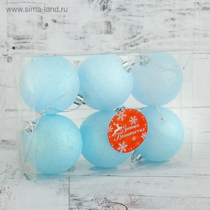 Ёлочные игрушки «Блеск», шары новогодние, набор 6 шт., d=6 см, голубой