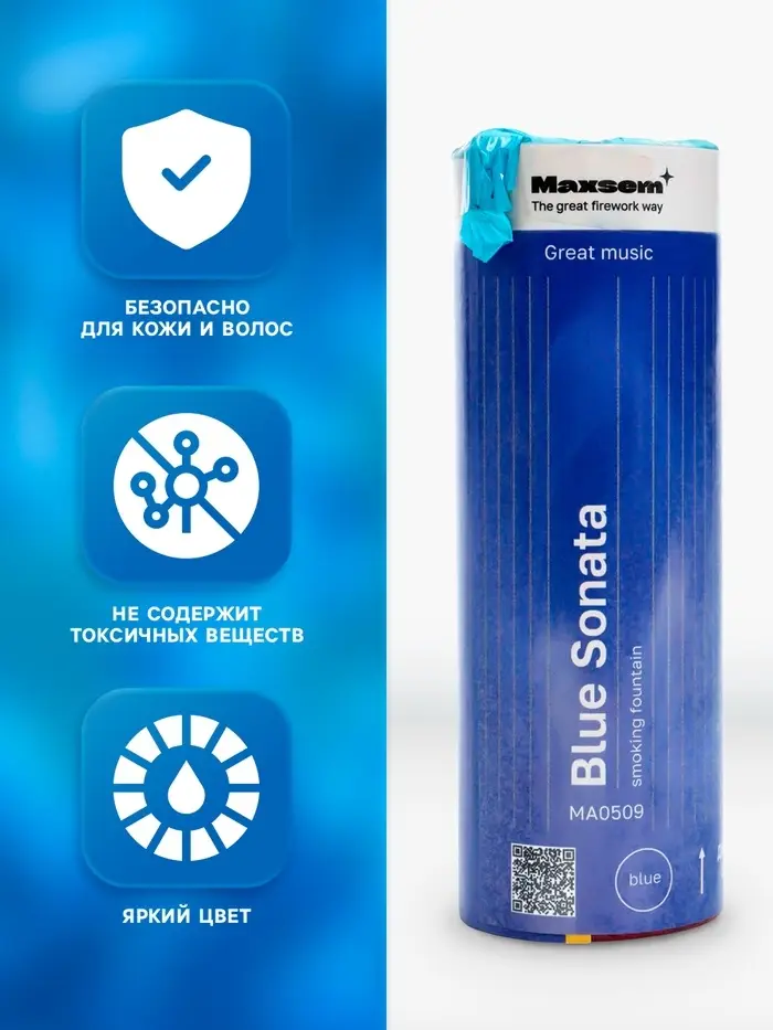 Цветной дым синий, заряд 1.75 дюйма, МАКСИ, очень высокая интенсивность, 30 сек