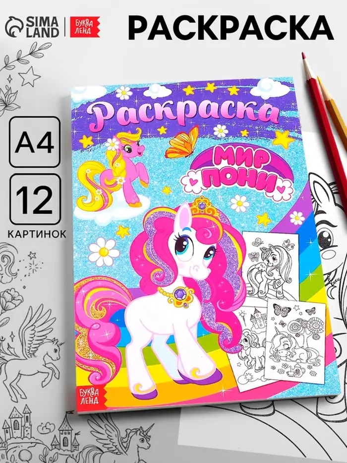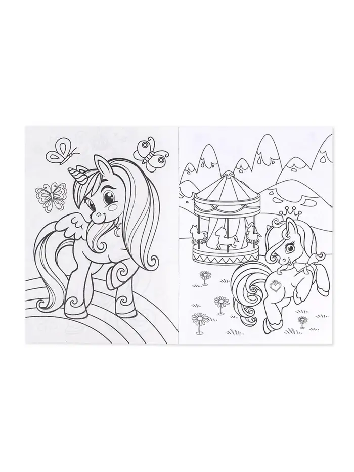 Раскраска для девочек «Мир пони» — это не просто набор картинок, а захватывающее приключение в мир творчества для вашего малыша! Вместе с единорогами ребёнок погрузится в яркий и волшебный мир, развивая при этом множество полезных навыков.