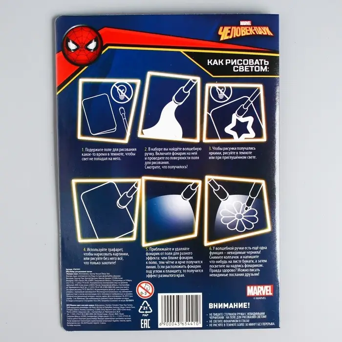 С помощью набора «Рисуем светом» и специального маркера ребёнок научится рисовать светом. Малыш будет создавать картинки, используя трафареты, или придумает собственные сюжеты.