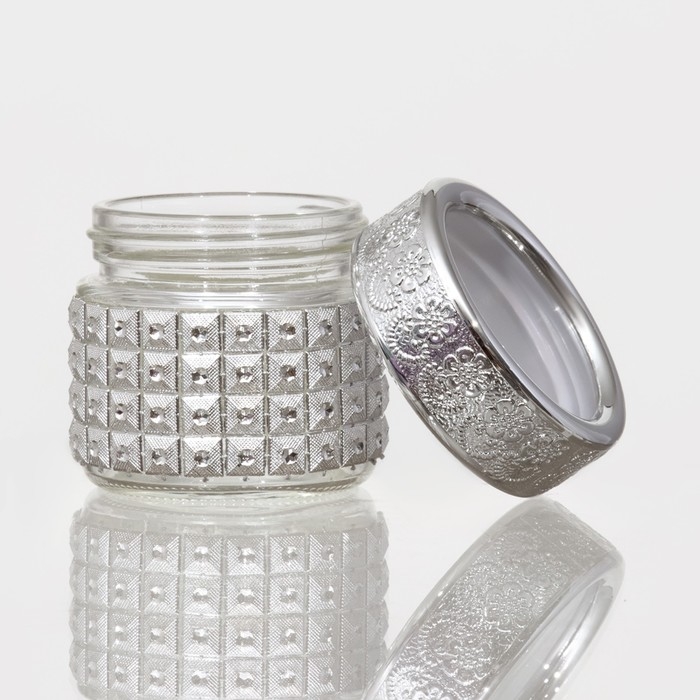 Банка стеклянная для хранения сыпучих продуктов «Сильвер», 100 мл, 5,7×5,5 см, с пластиковой крышкой, цвет серебряный