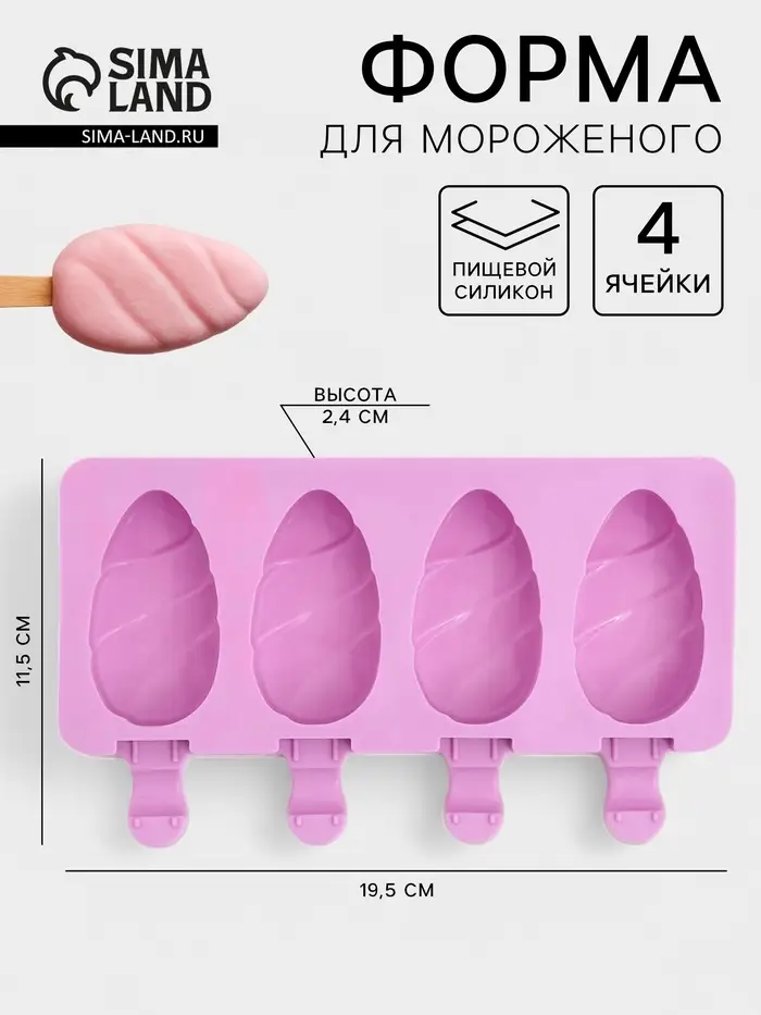 Форма для мороженого Доляна «Моника», силикон, 19.5×11 см, 4 ячейки (6.7×3.2 см), МИКС
