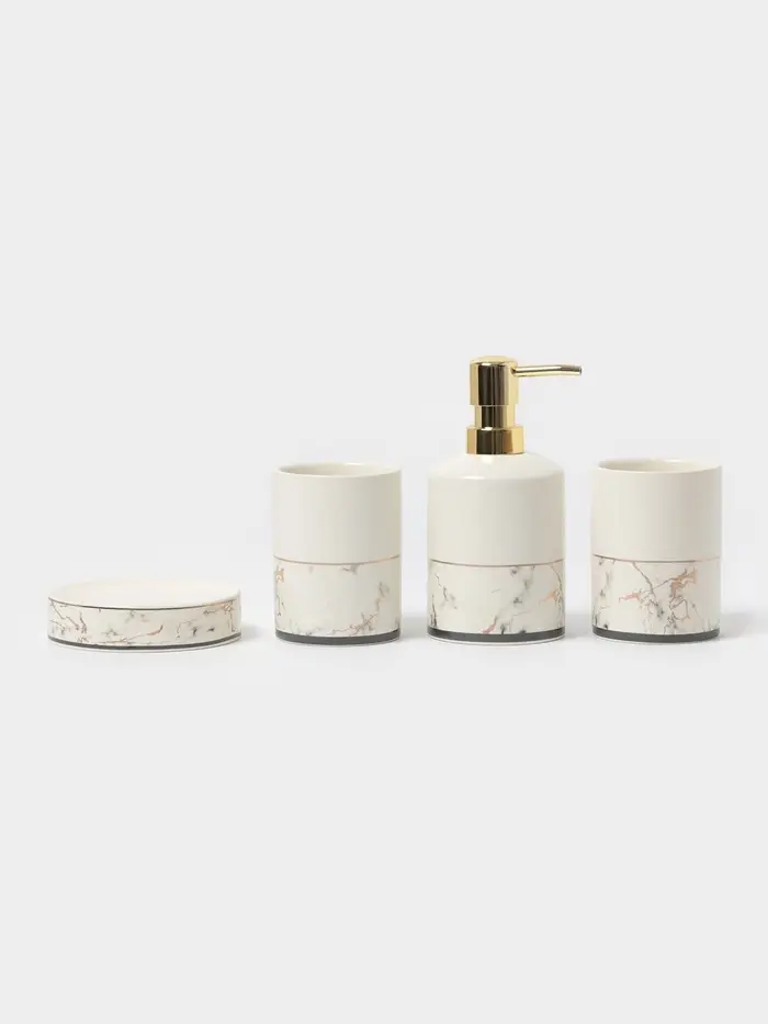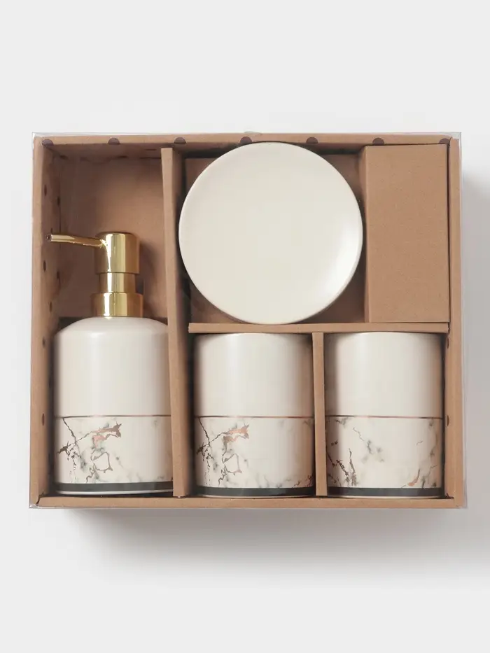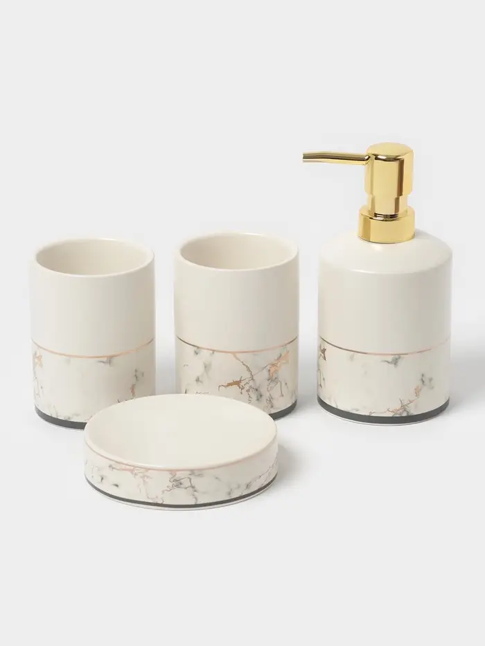 Аксессуары для ванной «Мрамор», 4 предмета, дозатор 190 мл, мыльница, 2 стакана 290 мл, белые