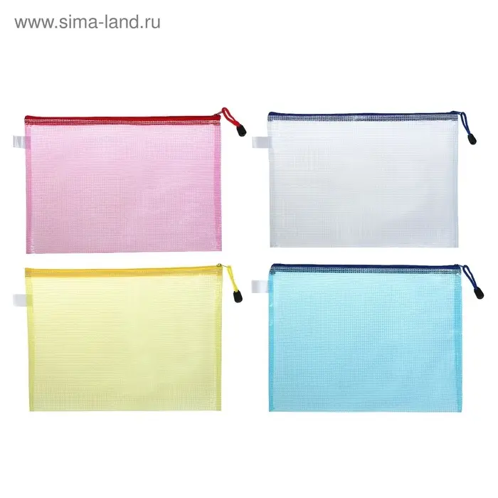 Папка-конверт на молнии Calligrata А6 (175×130 мм), с сеткой внутри, МИКС