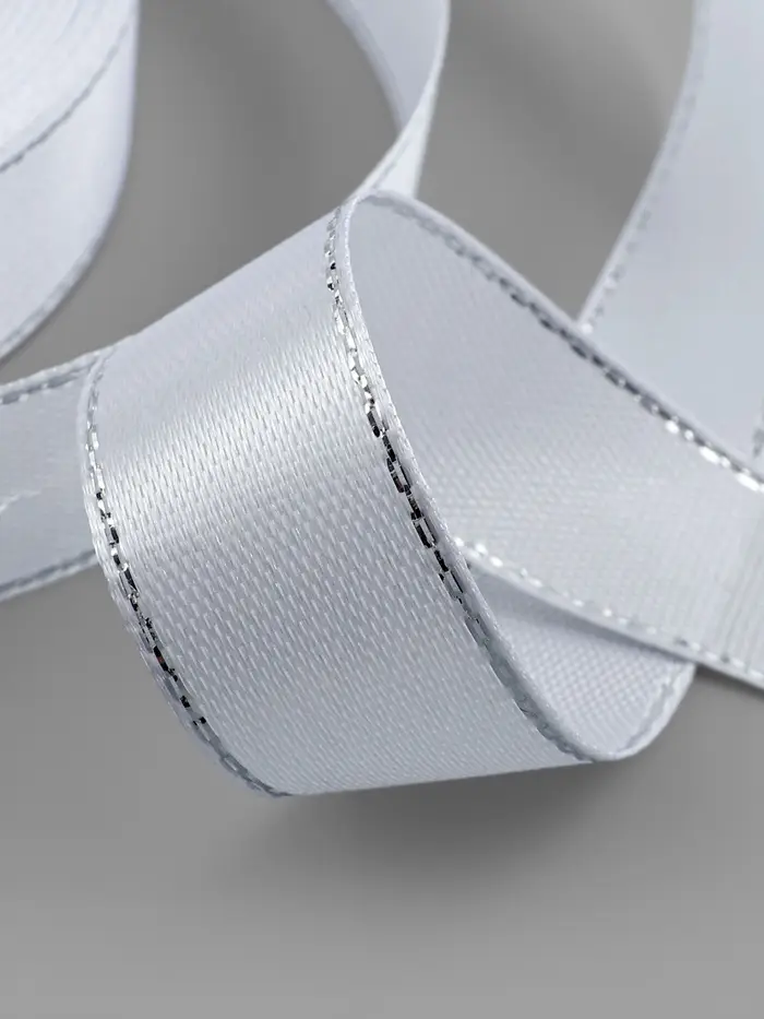 Лента атласная, с серебряным люрексом, 25 мм, 23±1 м, белая №001