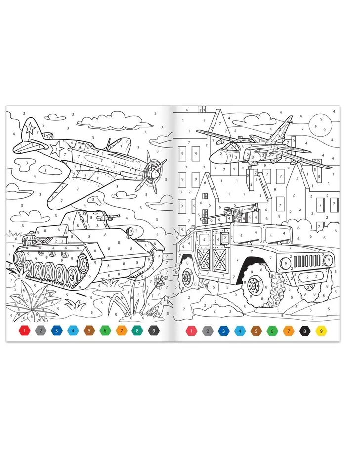 Раскраска по номерам «Военная техника», 16 стр., формат А4