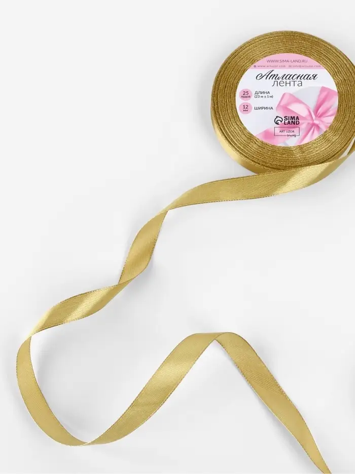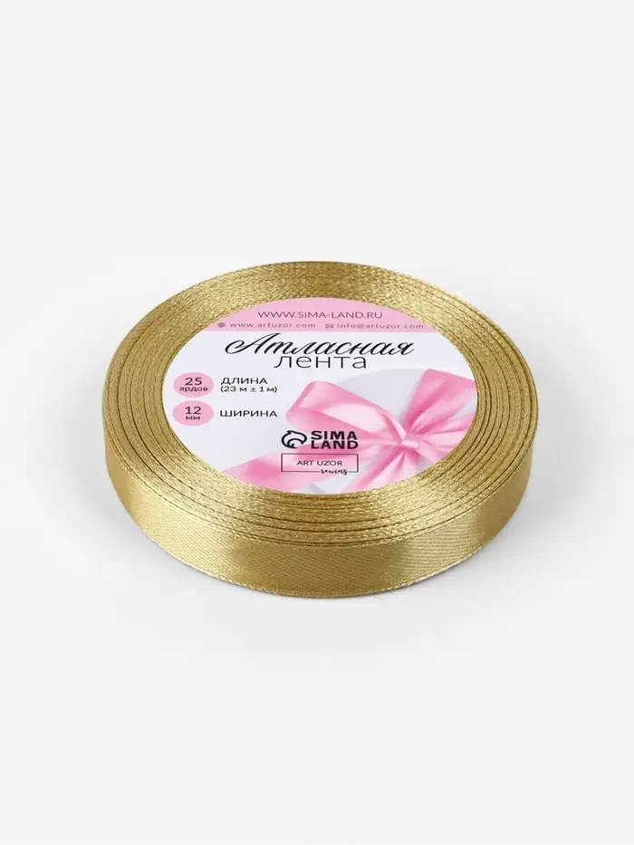 Лента атласная, 12 мм, 23±1 м, цвет золотой №204