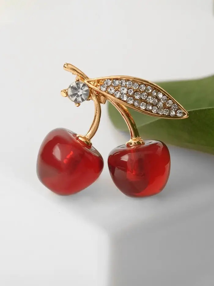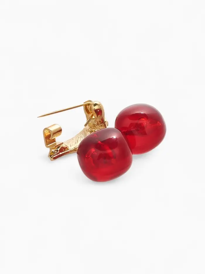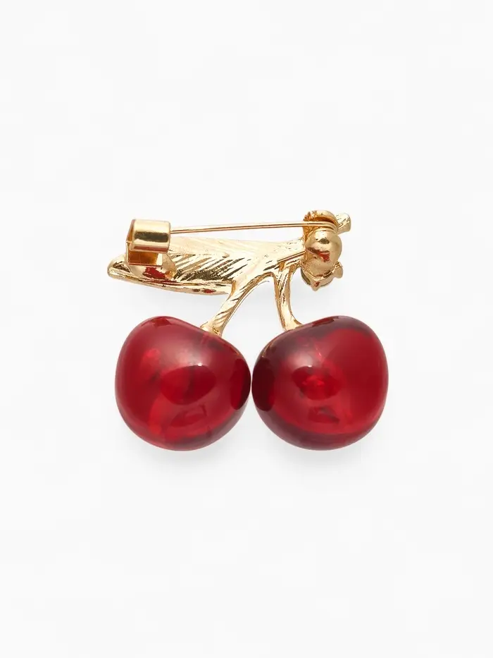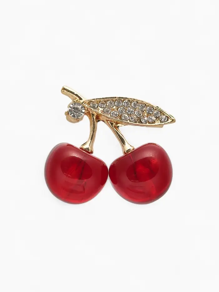 Небольшая, но выразительная брошь с красно-белыми наливными вишнями и золотистым основанием станет эффектным акцентом вашего образа. С длиной всего 2,9 см она идеально подходит для деликатного украшения одежды, придавая ей свежесть и игривость.