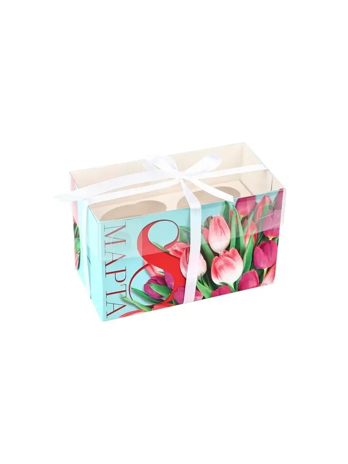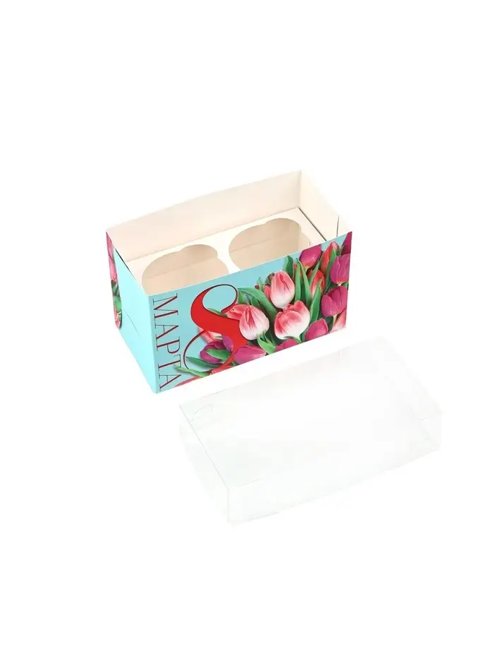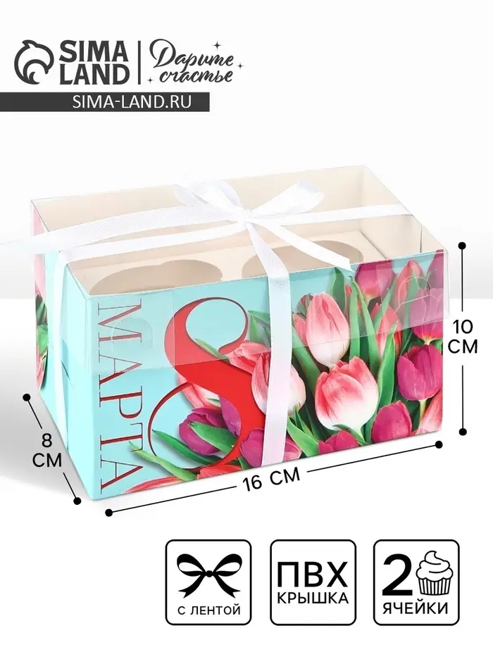Коробка для капкейков, кондитерская упаковка, 2 ячейки «8 Марта», 16×8×10 см