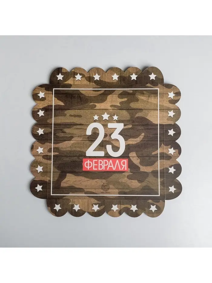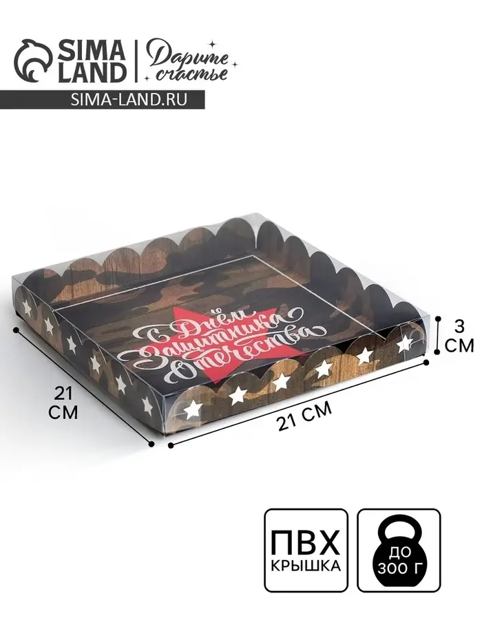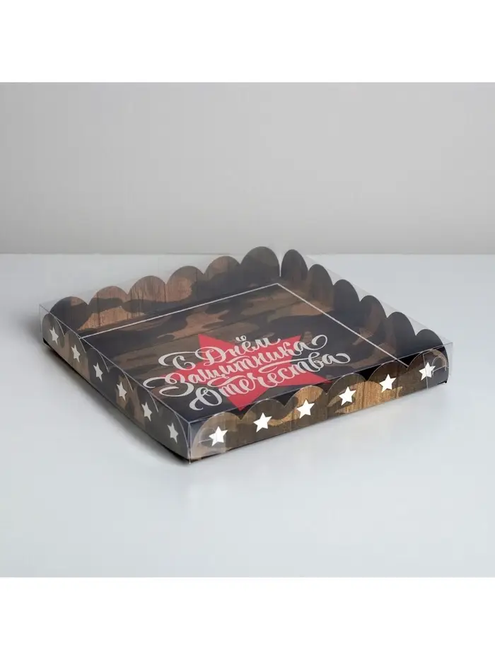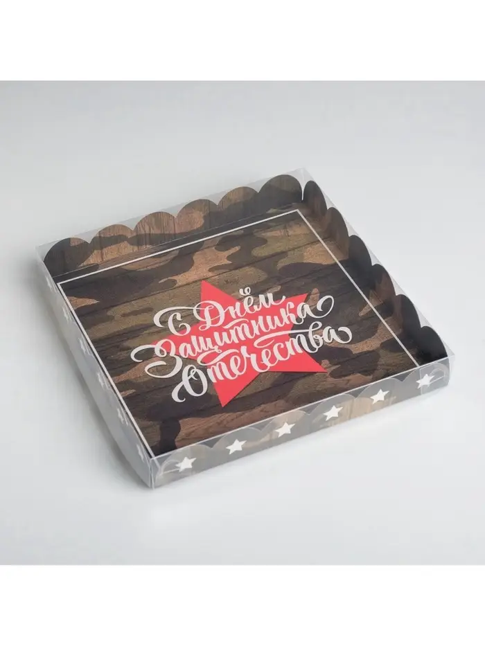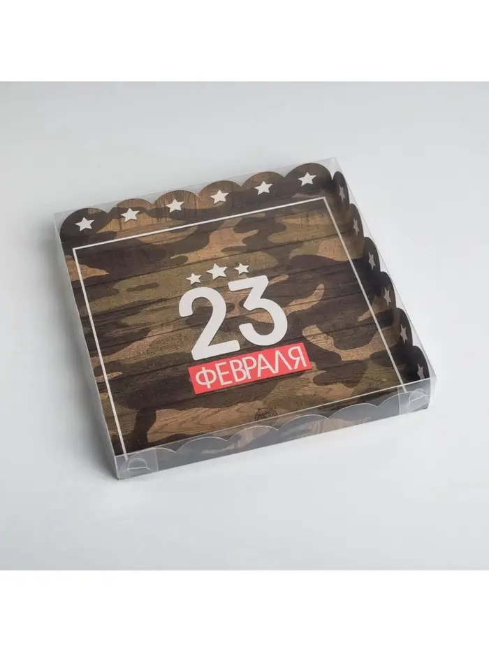 Коробка для печенья, кондитерская упаковка с пластиковой крышкой, «23 февраля», 21×21×3 см