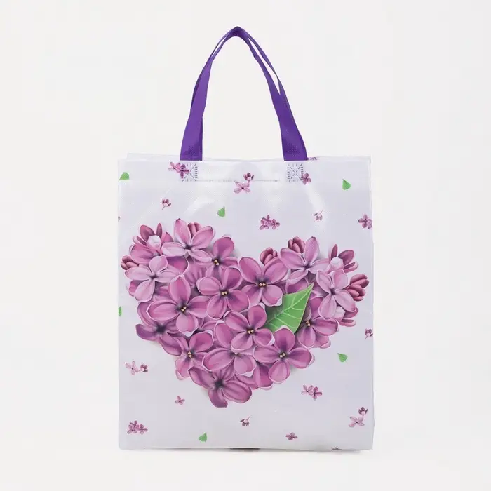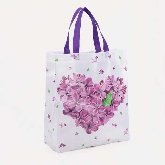 Сумка хозяйственная «Сирень», без застёжки, 32×12×36 см, белая