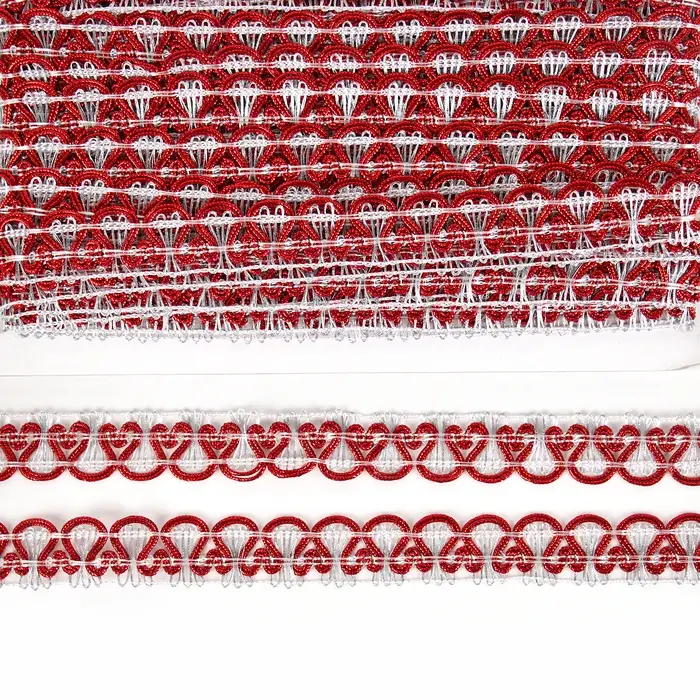 Тесьма плетёная красно-белый в рулоне 20 метров
