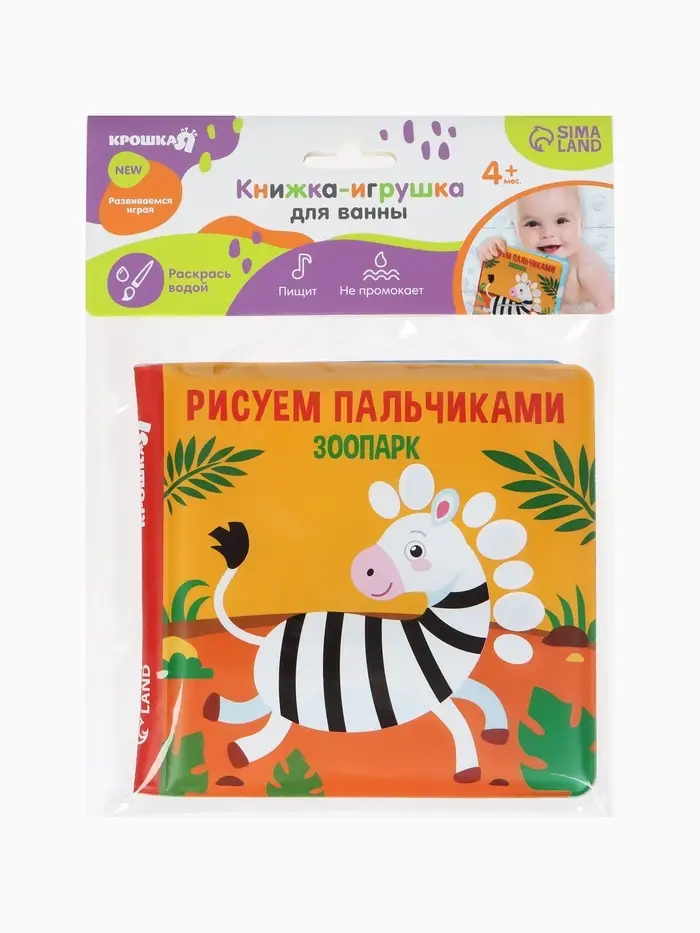 Книжка - игрушка для ванны Крошка Я «Рисуем пальчиками: зоопарк», водная раскраска
