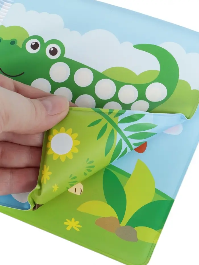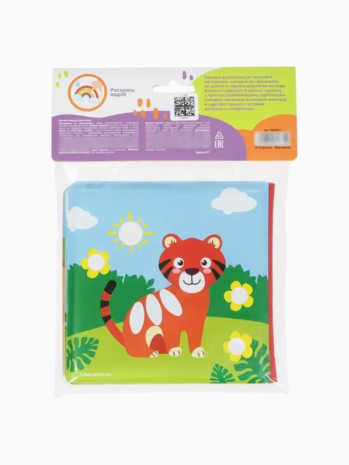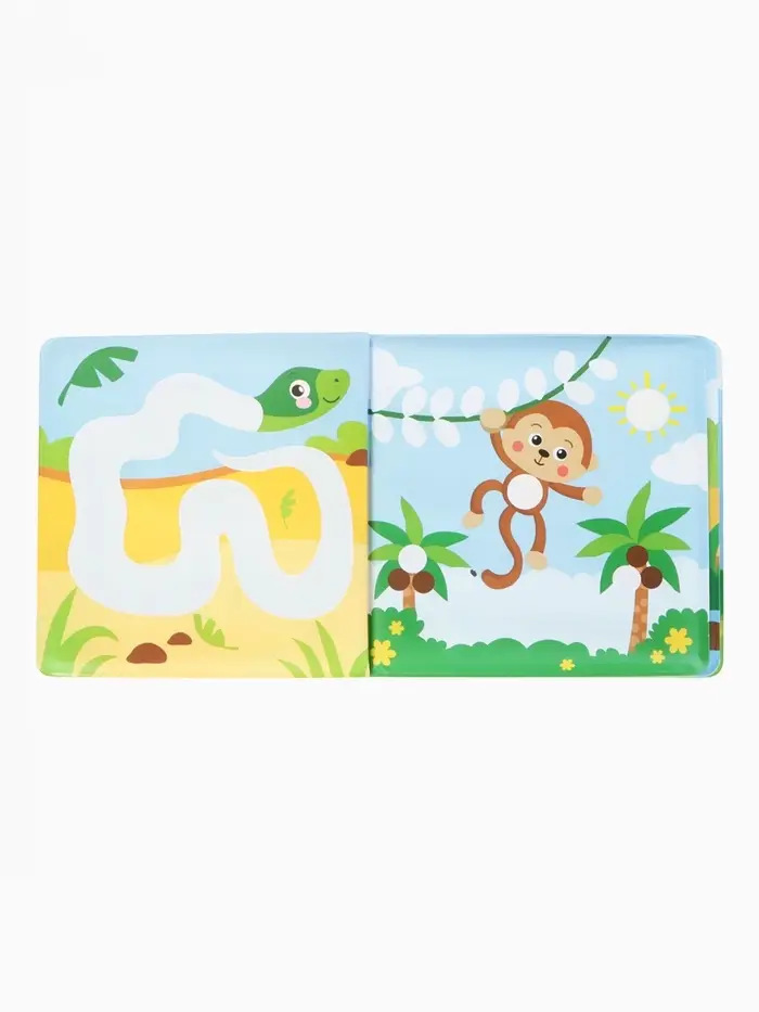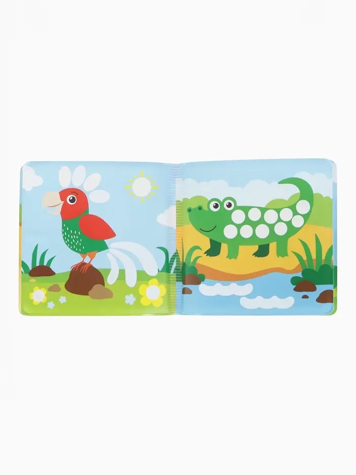 - Книжка выполнена из безопасного материала, который не разрушается под воздействием воды. Она плавает на поверхности, что делает процесс игры комфортным и безопасным для малыша.