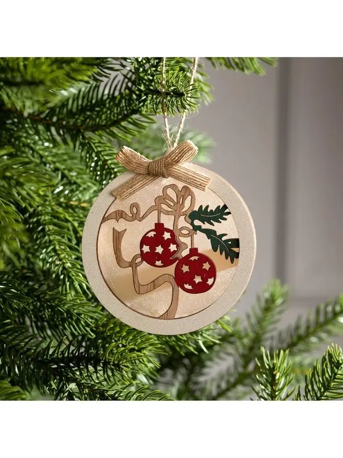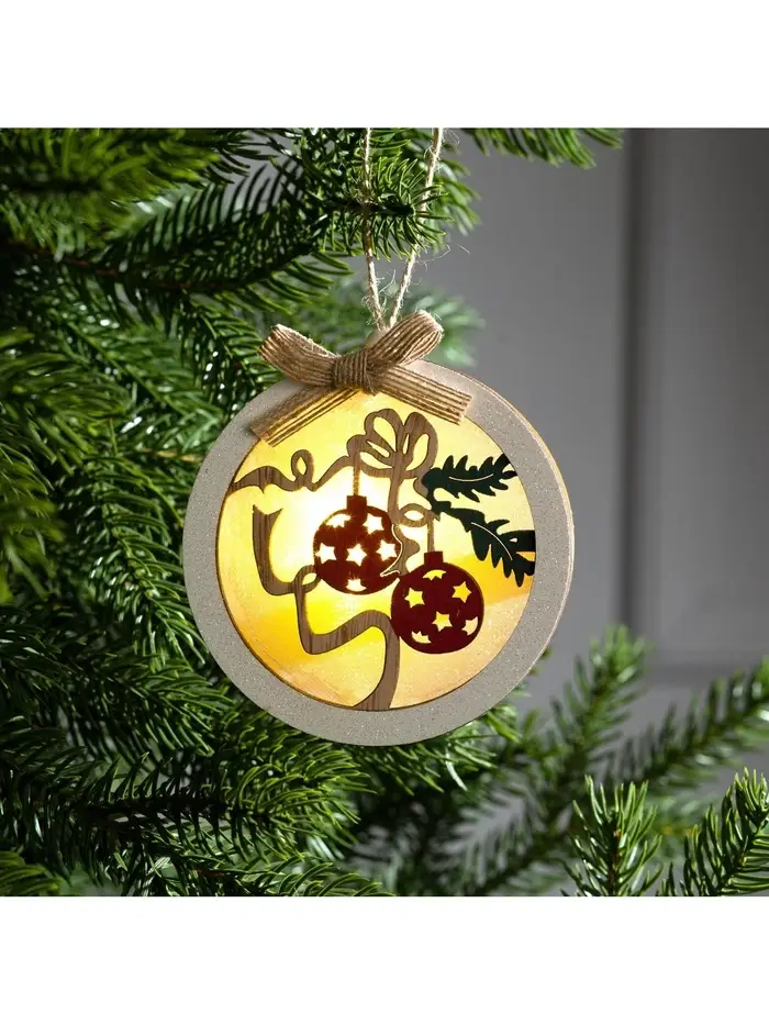 Ёлочная игрушка «Шар с веткой», 10×10×2 см, от батареек, свечение тёплое белое