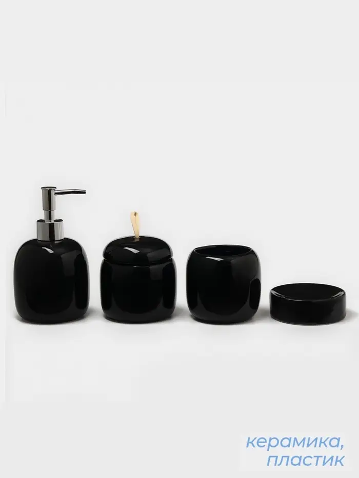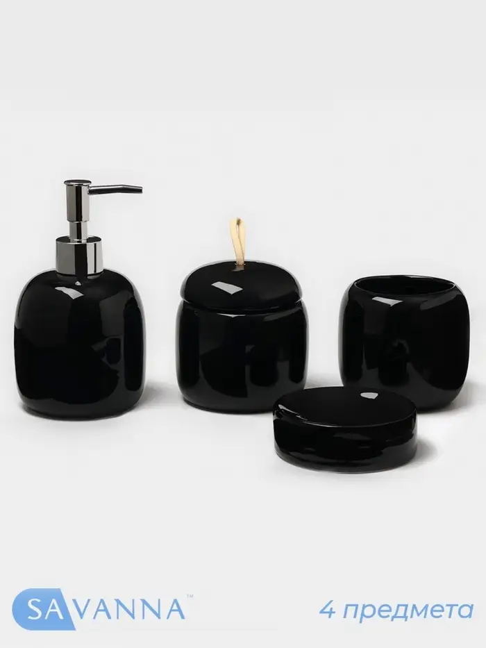 Набор аксессуаров для ванной комнаты SAVANNA Monro, 4 предмета, мыльница, дозатор для мыла 450 мл, стакан, баночка, чёрный