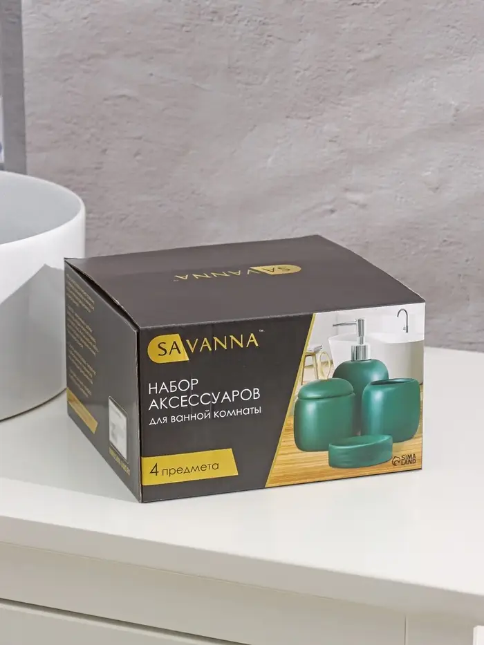 Аксессуары для ванной SAVANNA Monro, 4 предмета, мыльница, дозатор для мыла 450 мл, стакан, баночка, белые