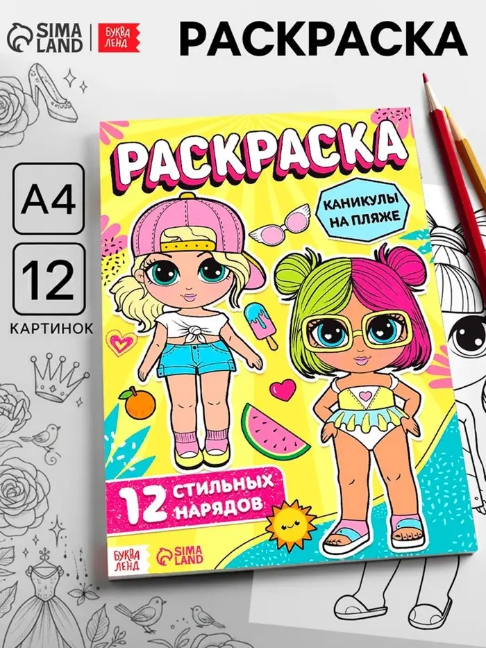 Раскраска из серии «Модный образ» создана специально для девочек. Ведь в ней целых 12 стильных образов!