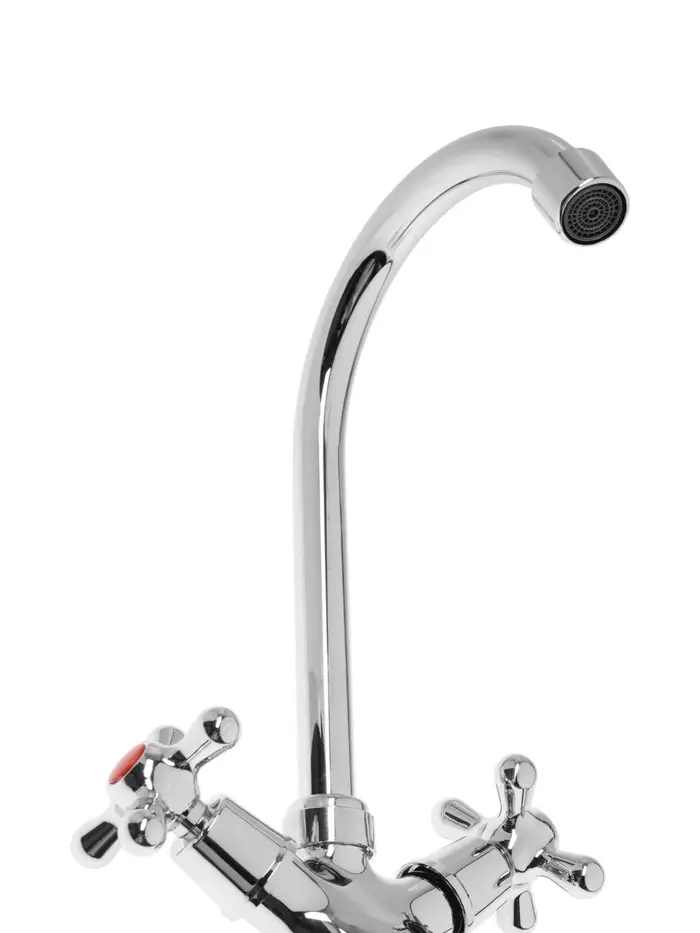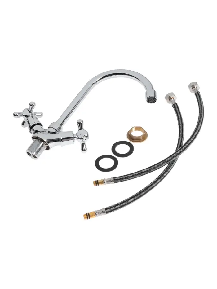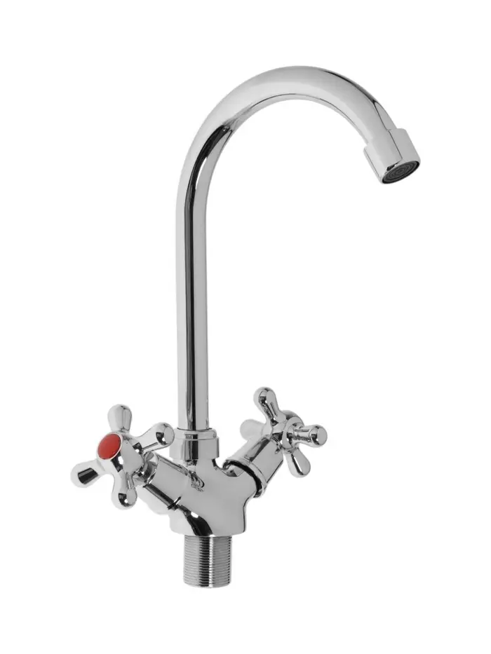 Двухвентильный кухонный смеситель, хром — классический смеситель для ежедневного использования. Высокий поворотный излив и раздельное управление водой.