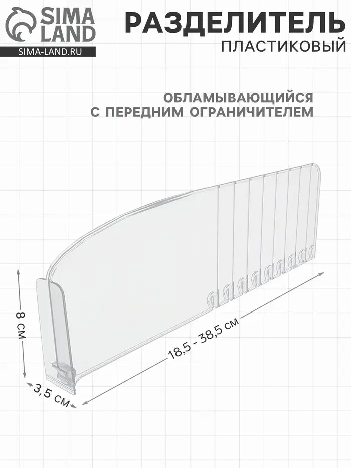 Пластиковый обламывающийся разделитель c передним ограничителем 8 см, 18.5-38.5×3.5×12 см