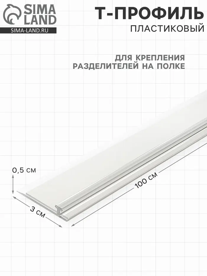 Т-профиль пластик для крепления разделителей на полке, со вспенен скотчем, 1000×30×5 мм,