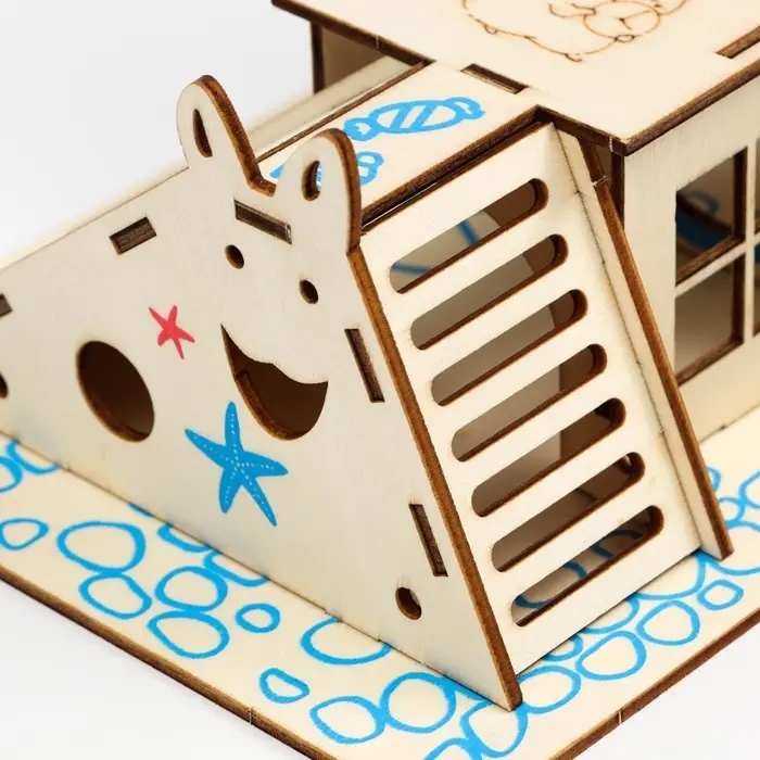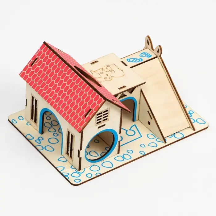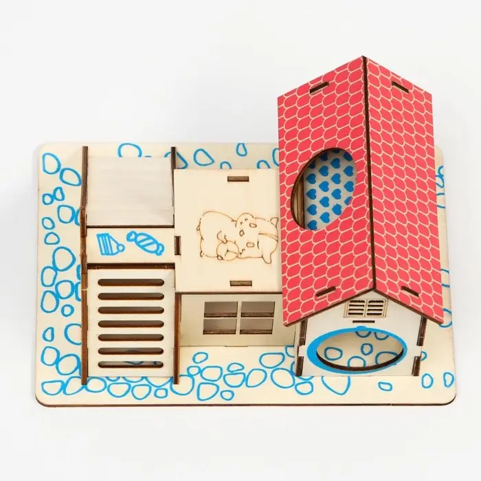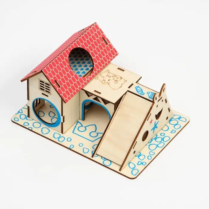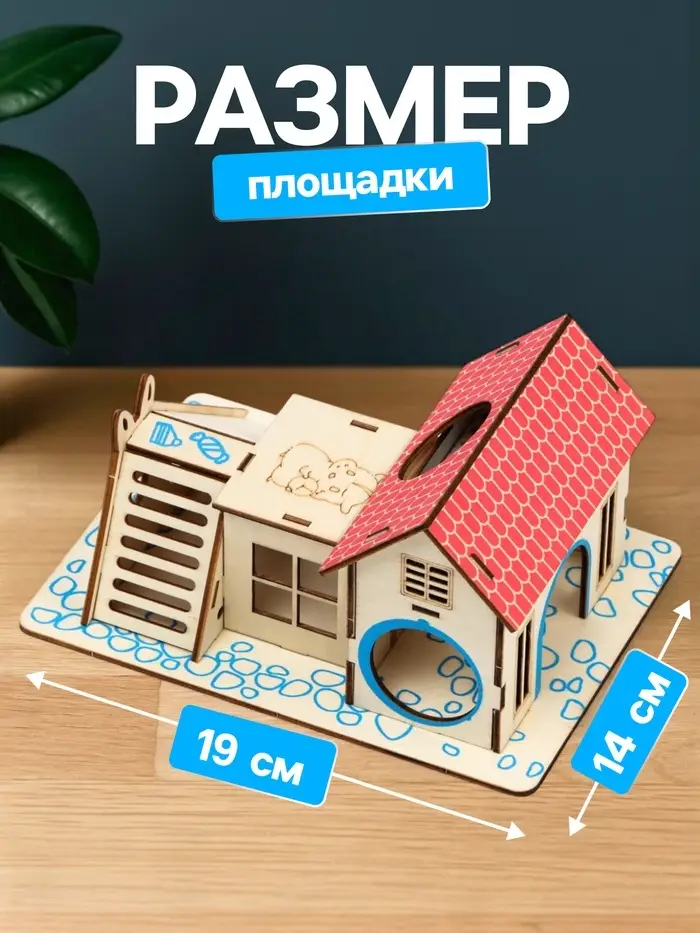 Деревянный комплекс, где грызун играет, прячется и исследует. Игровая площадка для грызунов размером 19×14 см изготовлена из натуральной фанеры и окрашена в яркие цвета. Подходит для хомяков, мышек и других мелких зверьков.