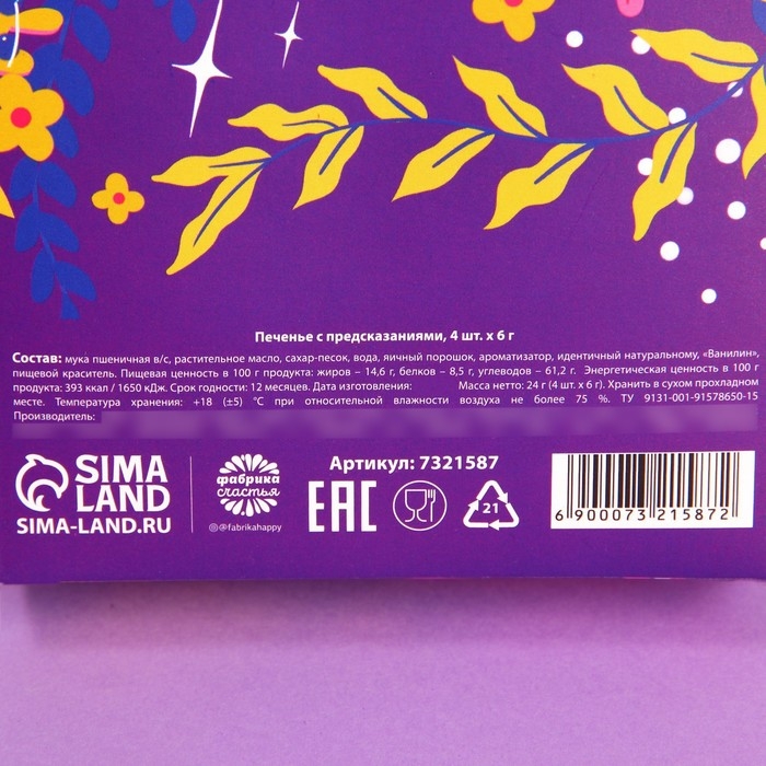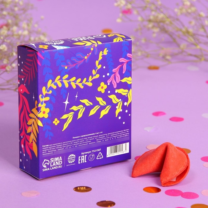 Печенье с предсказанием «8 марта. Расцветай», в коробке, 1 шт