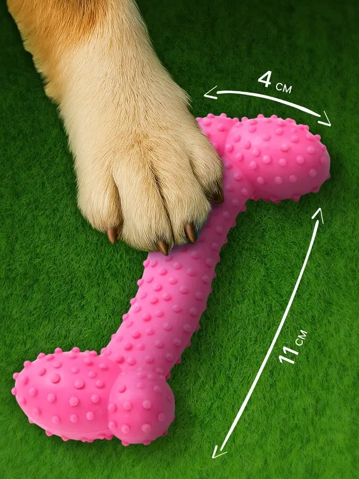 - Привлекательная форма и цвет: Классическая форма косточки и яркий розовый цвет делают игрушку интересной для собаки и удобной для броска во время игры на улице.