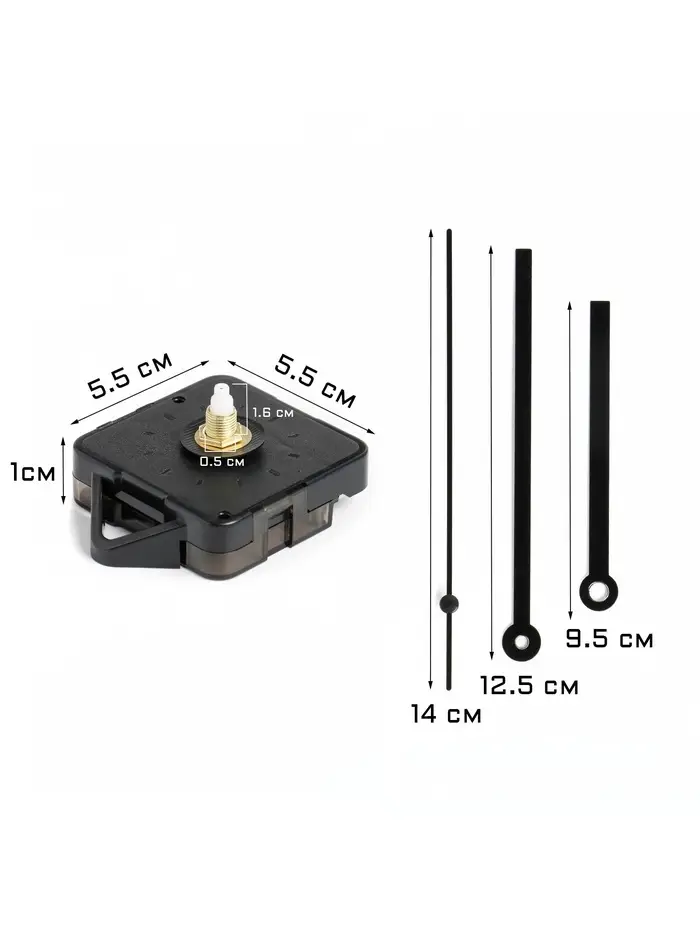 Чёрный цвет стрелок подчёркивает стиль и элегантность, а сочетание металла и пластика гарантирует надёжность и долговечность механизма. Благодаря плавному ходу стрелок отсутствуют раздражающие тиканья, что делает этот механизм идеальным выбором для спальни, офиса или гостиной.