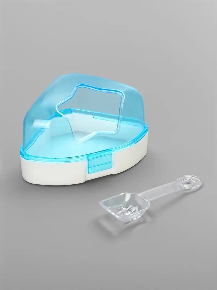 Ванночка для грызунов, 14×10.4 см, угловая, с лопаткой, пластик, голубая