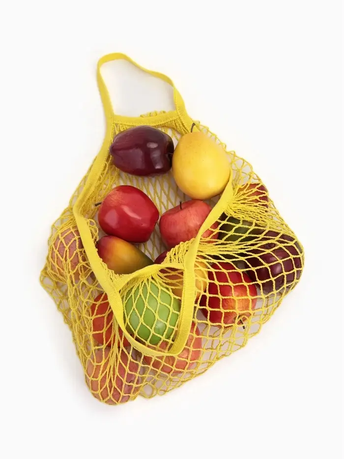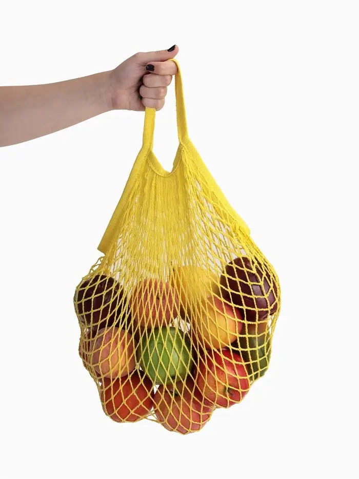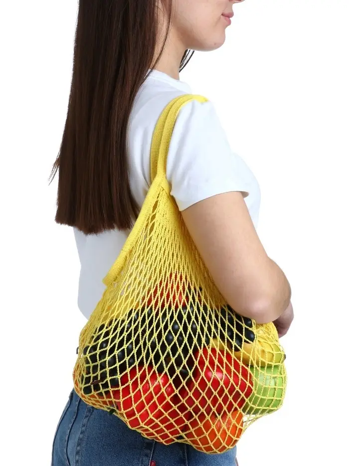 Сетчатые сумки из хлопка, произведенного с заботой о людях и природе, позволят вам обходиться без одноразовых пластиковых пакетов, а значит, уменьшить воздействие на климат. Кроме того, в таких сумках можно хранить фрукты и овощи.