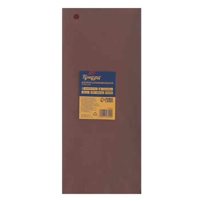 Шкурка шлифовальная в листах ТУНДРА, на бумажной основе водост., 115×280, Р2000, 10 шт.
