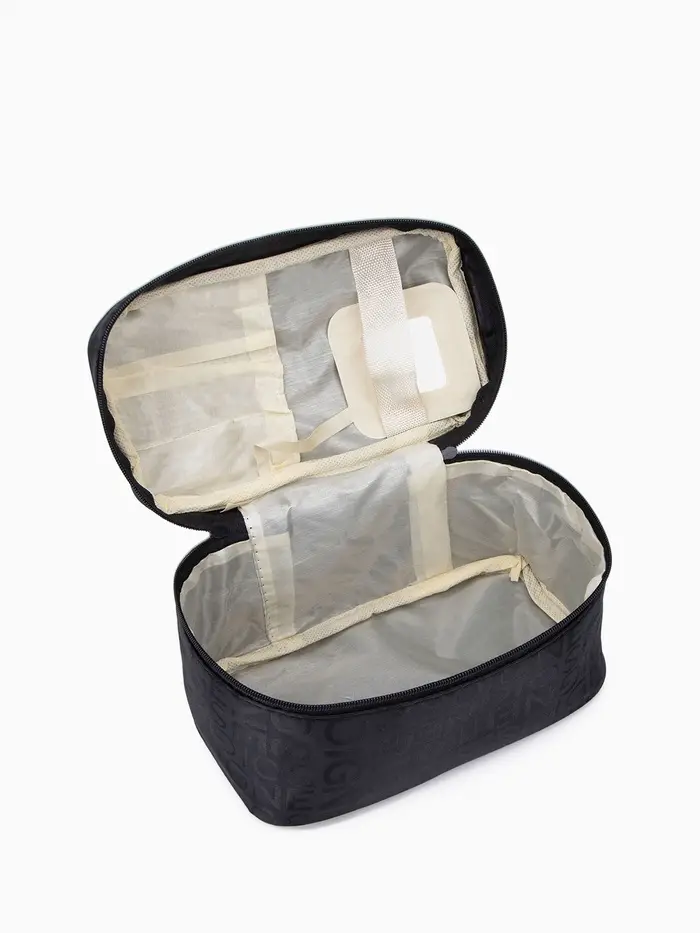 Этот стильный черный косметик-сундук — практичный спутник для деловых поездок и путешествий. Его лаконичный дизайн с графичным принтом в тематике писем и газет подчеркивает индивидуальность, оставаясь универсальным аксессуаром. Вместительное основное отделение на молнии надежно хранит все необходимое: от средств для бритья и парфюма до гаджетов и документов. Жесткие стенки и прочная ручка обеспечивают удобство в ежедневном использовании.