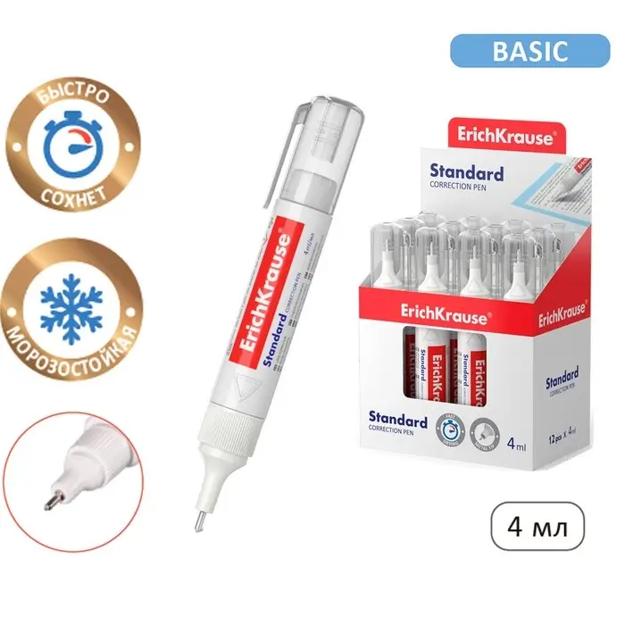 Ручка-корректор 4 мл, ErichKrause Standard, с металлическим наконечником