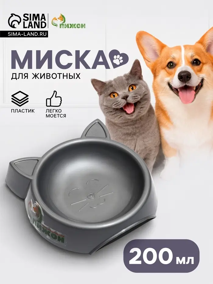Миска «Кошачьи ушки», 200 мл, 15×3.7 см, пластик, серая