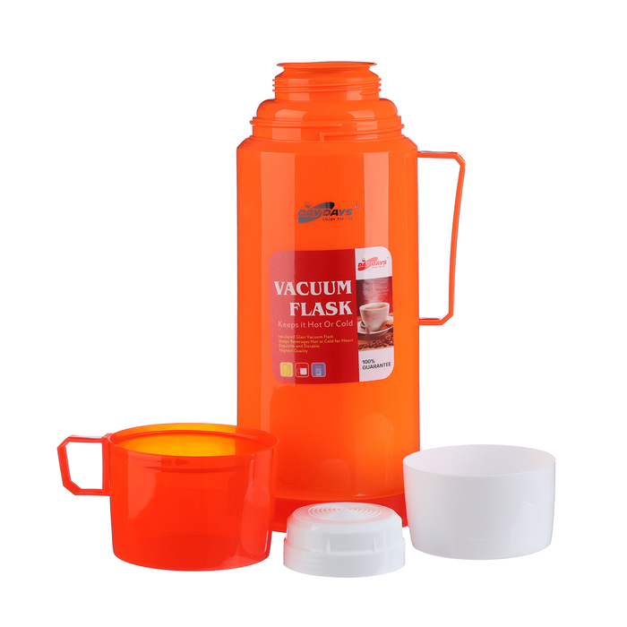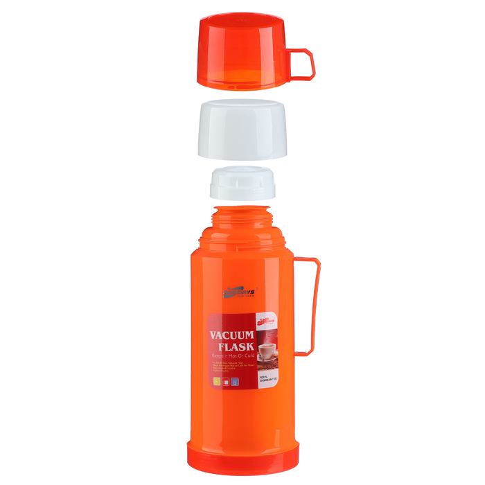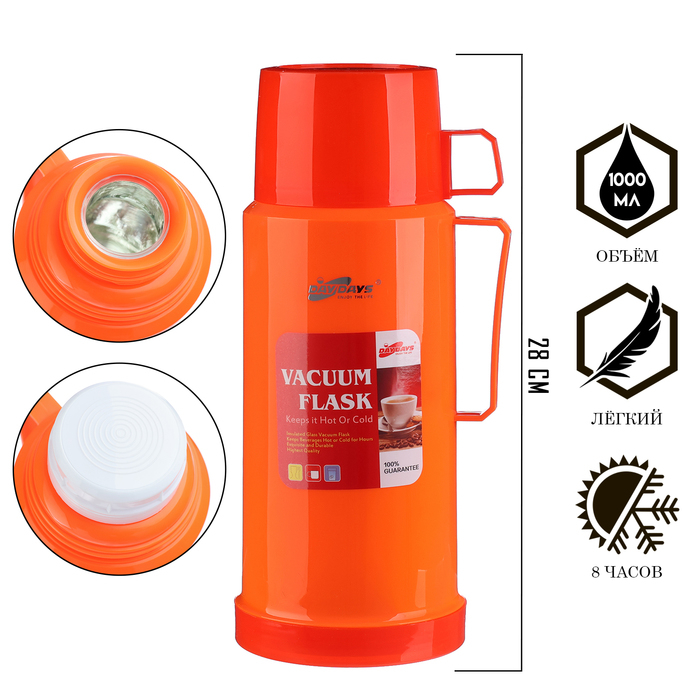 Термос 1 л, со стеклянной колбой, сохраняет тепло 8 ч, 13 х 28 см, оранжевый